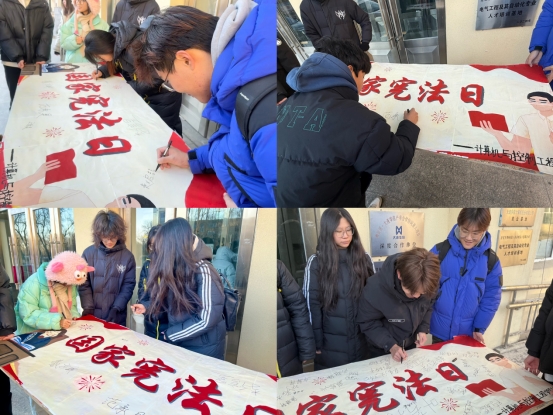 为深入开展宪法宣传教育,弘扬宪法精神,营造尊法学法守法用法的校园氛围,12月7日,我院在博才楼下组织开展法治宣传签名活动。此次活动是学院开展“宪法宣传周”暨校园法治文化节系列活动的重要组成部分,通过互动参与的形式增强学生法治意识,引导学生自觉维护宪法权威。