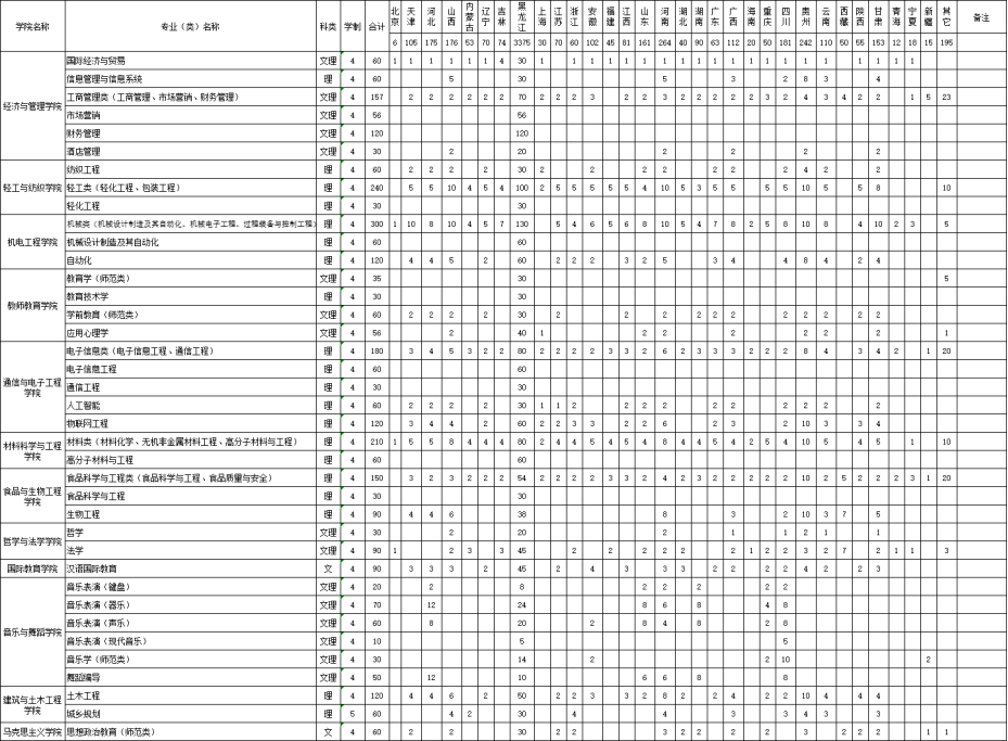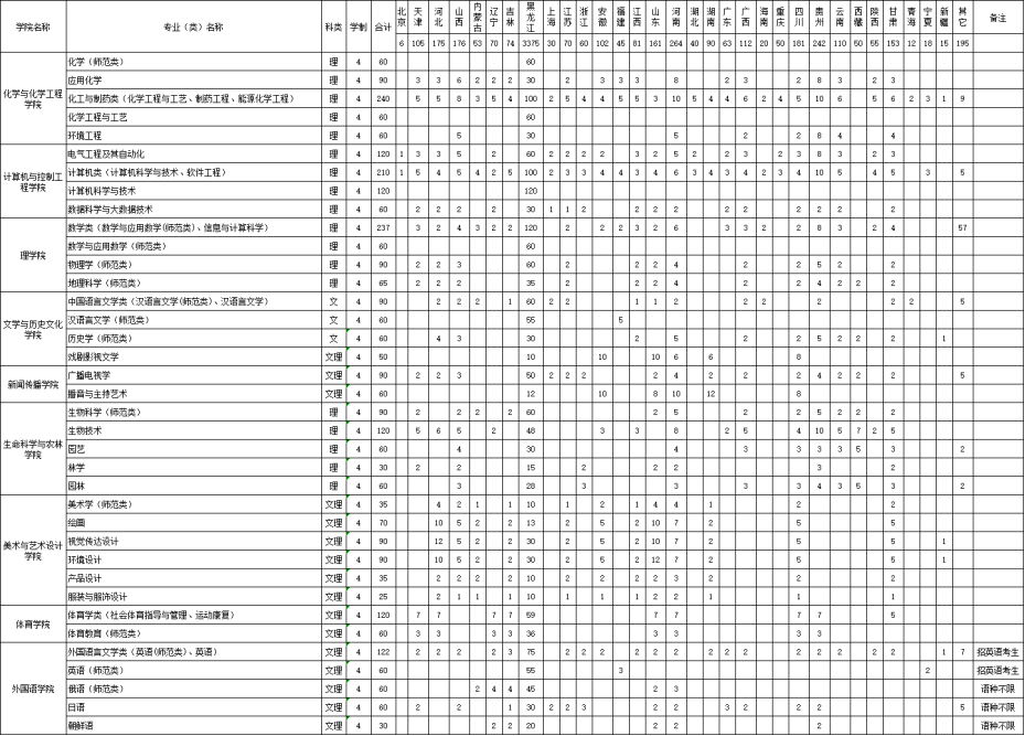 齐齐哈尔大学2020年分省分专业招生来源计划一览表