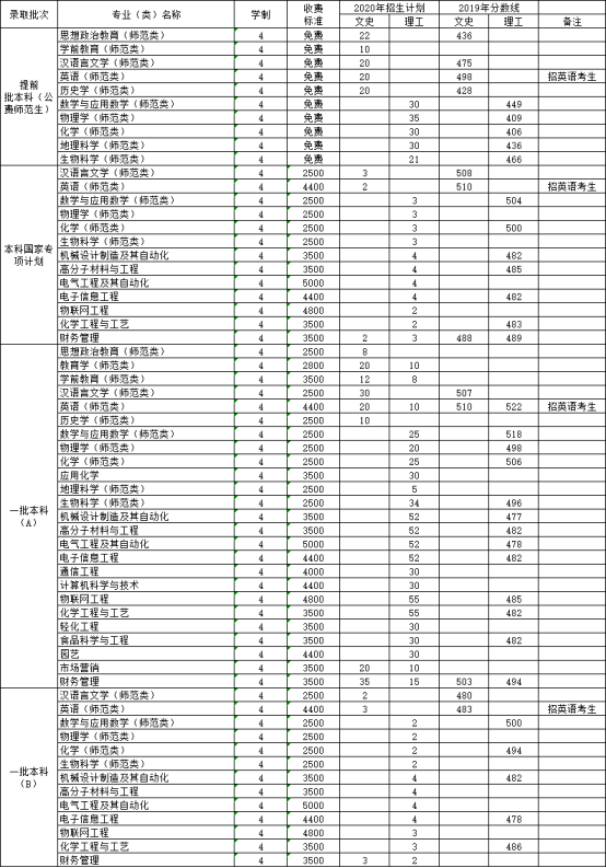 齐齐哈尔大学2020年黑龙江省分专业招生计划及2019年录取分数一览表