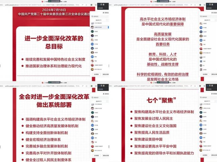 本次主题团日活动采取线上学习的形式,由各团支部书记组织团员青年进行线上团课学习。各团支部积极响应号召,观看关于党的二十届三中全会精神解读视频,包括全会召开的背景、重要意义、对中国式现代化建设的推动作用等方面,全体团员深入学习新发展理念,深刻认识党的二十届三中全会的重大意义。团员们纷纷表示,将认真学习领会全会精神,贯彻落实到自己的学习与工作中,奋力谱写为中国式现代化挺膺担当的青春篇章。