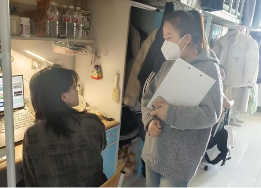 辅导员们对学生宿舍进行了全面细致地检查,重点针对用电安全、杂物摆放、设施维护等隐患问题展开排查整治,严格按照要求做好记录,对发现的问题逐一登记,及时与相关宿舍的学生沟通,提出整改意见,督促其立即整改。