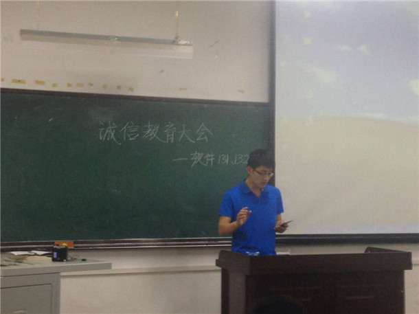 大会上,两位班主任向大家传达了学校关于抓好考风考纪工作的相关精神。他们强调,诚信不是一次考试,是一生的考试,更是一个大学生的基本品质;诚实守信是每个合格大学生应该具有的品德。