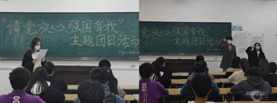 活动开始时,所有团员共同重温入团誓词和《团章》,唤起了每一位团员的入团初心。然后,主持人向大家讲述了中国共产党成立100年以来发生的巨大变化以及取得的伟大成就。活动最后,秦瑞佳同学带来了一段振奋人心的演讲,激昂的语言让大家心潮澎湃,坚定了“吾辈当自强”的信念和决心。