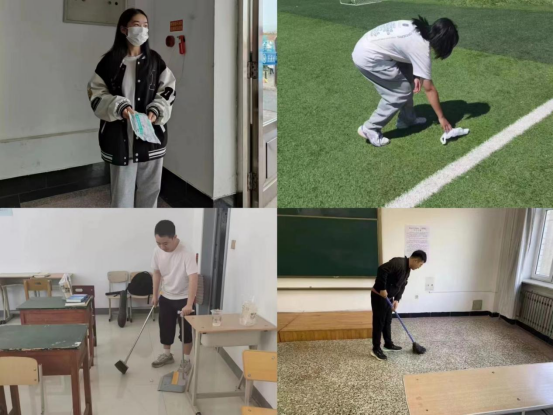 活动中,有些志愿者在楼宇大门为学生们分发口罩,提醒大家注意早晚温差,适当增减衣物,保持身体健康。有些志愿者在自习室打扫卫生,清理操场及周围公共区域的垃圾。同学们认真负责,不怕脏、不怕累,真正体现了无私奉献的志愿精神。