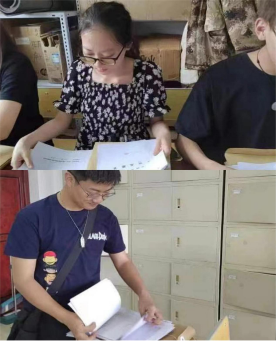 支部党员对毕业生档案材料进行逐项清点,认真、仔细核对相关信息,确保档案内容准确无误之后,统一对档案进行封装保管,避免材料缺失、错装等问题的出现,大家分工有序,有条不紊,准确高效地完成了此次工作。