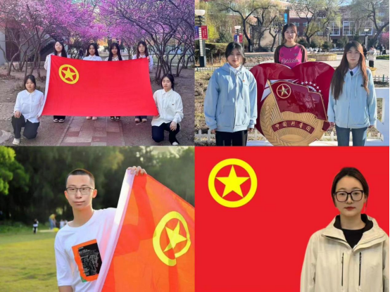 青年们以团旗和团徽为背景,设计并拍摄了一系列创意十足的合影,鲜艳的团旗和闪耀的团徽成为了最靓丽的风景,用最灿烂的笑容、最挺拔的身姿定格“我与团徽、团旗”的精彩瞬间,每一张合影都表达了他们对共青团的热爱和对青春使命的担当。学生们以社团或个人为单位,有的学生将团旗高高举起,寓意青年力量与国家发展同行;有的学生则巧妙融入专业特色,通过科技手段,采用AI技术与团旗合影,展现了新时代青年的创新精神。