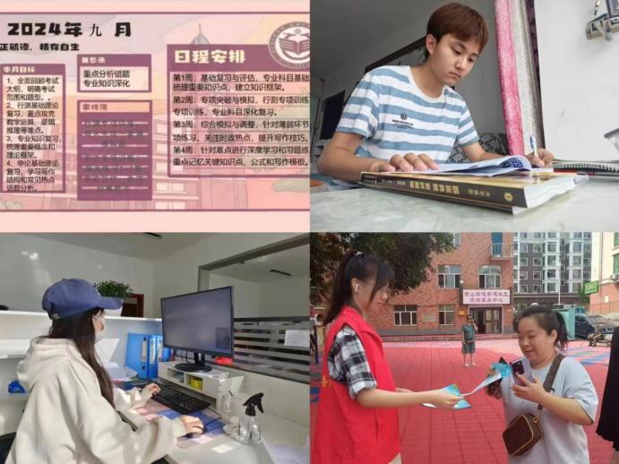 在本次活动中,学生们充分利用暑假时间,根据个人兴趣、专业需求以及未来规划,精心制定了详尽的学业发展计划。这些计划不仅明确了考公、考研等具体任务目标,而且通过分阶段、分步骤的方式加以推进,确保每个阶段都能有所收获、有所成长。此外,学生们还深入到企业、社区等各个领域,通过亲身体验和实践操作,感受社会发展的脉搏,了解行业前沿动态。