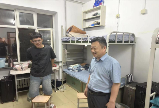 为深入了解2024级新生入学情况,帮助新生更快地融入新集体、新环境、新生活。自8月24日新生报到以来,我院党委书记陈志强、院长张剑飞、党委副书记孟庆伟,副院长于晓敏、团委书记姜艳丽多次深入学生宿舍,与同学们“拉家常、聊近况、话学业”,现场解决他们来校后的各种困惑,为同学们送去关怀与温暖。