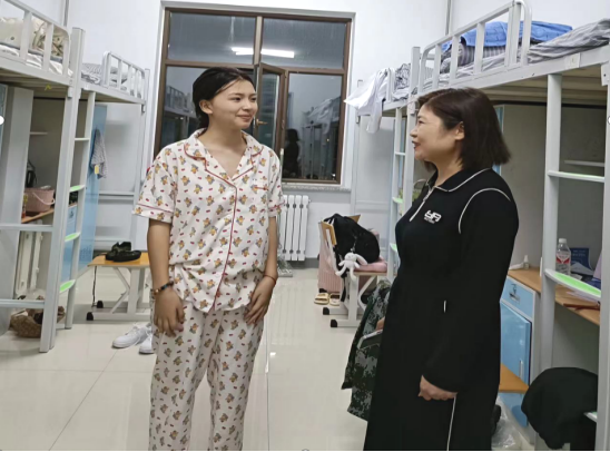 于晓敏与同学们进行了亲切交流,关心询问了大家入校后的生活适应情况,并鼓励他们以积极的心态迎接新学期,热情投入到学习和生活中。她反复叮嘱新生在遇到困难时要及时与班主任和辅导员联系,并强调舍友之间要团结友爱,共同进步。