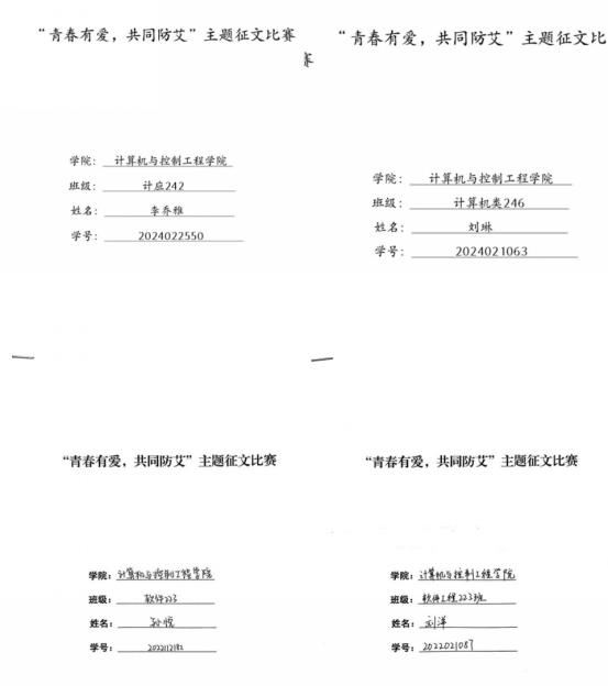 活动期间,学生们积极参与、踊跃投稿,字里行间透露着学生们的防艾意识及知识储备,展现了我院学子努力普及艾滋病知识、减轻人们对于艾滋病的偏见和误区、积极承担社会责任的热情。