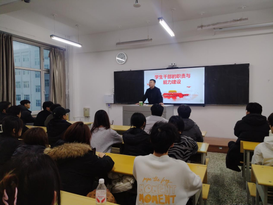 为提升学生干部综合素养,增强责任意识与信念担当,凝聚学生骨干力量,11月22日,我院举办专题团课“学生干部的职责与能力建设”,此次讲座由学工办辅导员曲浩天主讲。