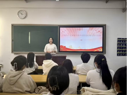 姜艳丽以党的百年奋斗历程为主线,围绕新民主主义革命伟大胜利、社会主义革命与建设、改革开放和现代化建设、中国特色社会主义新时代四个核心阶段,结合党的初心使命与百年实践积淀的宝贵经验,带领学生重温党带领中国人民从积贫积弱走向繁荣强盛、从被动挨打到主动引领的壮阔征程,引导大家从党史把握发展规律、增强时代自觉。让同学们深刻认识中国特色社会主义制度的优越性,增强“四个自信”,努力成长为担当民族复兴大任的时代新人。