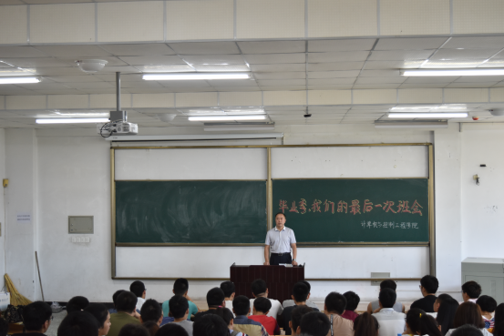 在这个依依惜别之际,我们进行了2013级学生大学本科期间最后一次集体班会。张春华首先讲了两个以往毕业季出现的影响正常毕业的例子,劝导同学们别因一时冲动做傻事。另外,他结合文明离校规定提出两点要求:一是爱心捐赠教材和考研的材料,给学弟学妹捐出来,献一份爱心;同时,把自己的物品整理好,把寝室收拾好,留给学弟学妹一个整洁的寝室。二有尊严的毕业离校,给学院留下一个美好的印象,不要违反国家法律和校规校纪 。