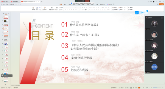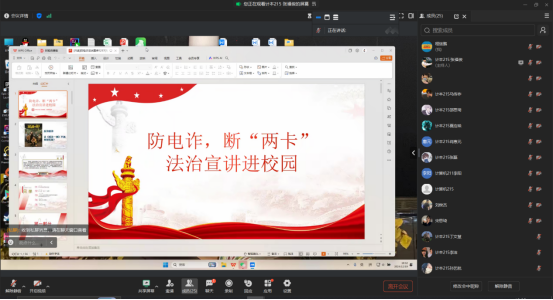 为切实加强电信网络诈骗防范教育工作,高效提升学生识骗、防骗的意识与能力,12月20日,我院线上开展防电诈、断“两卡”法治宣讲主题班会。