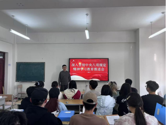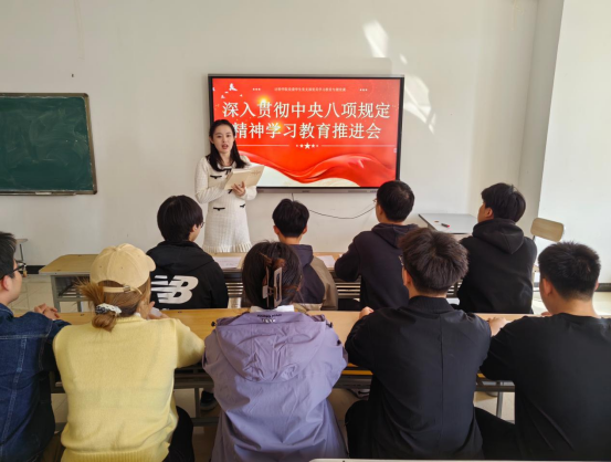 为深入学习贯彻中央八项规定精神,扎实推进学生党员能力作风建设,4月17日,学院各学生党支部分别召开贯彻中央八项规定精神学习教育工作推进会。会议由各学生党支部书记主持,全体学生党员参加会议。