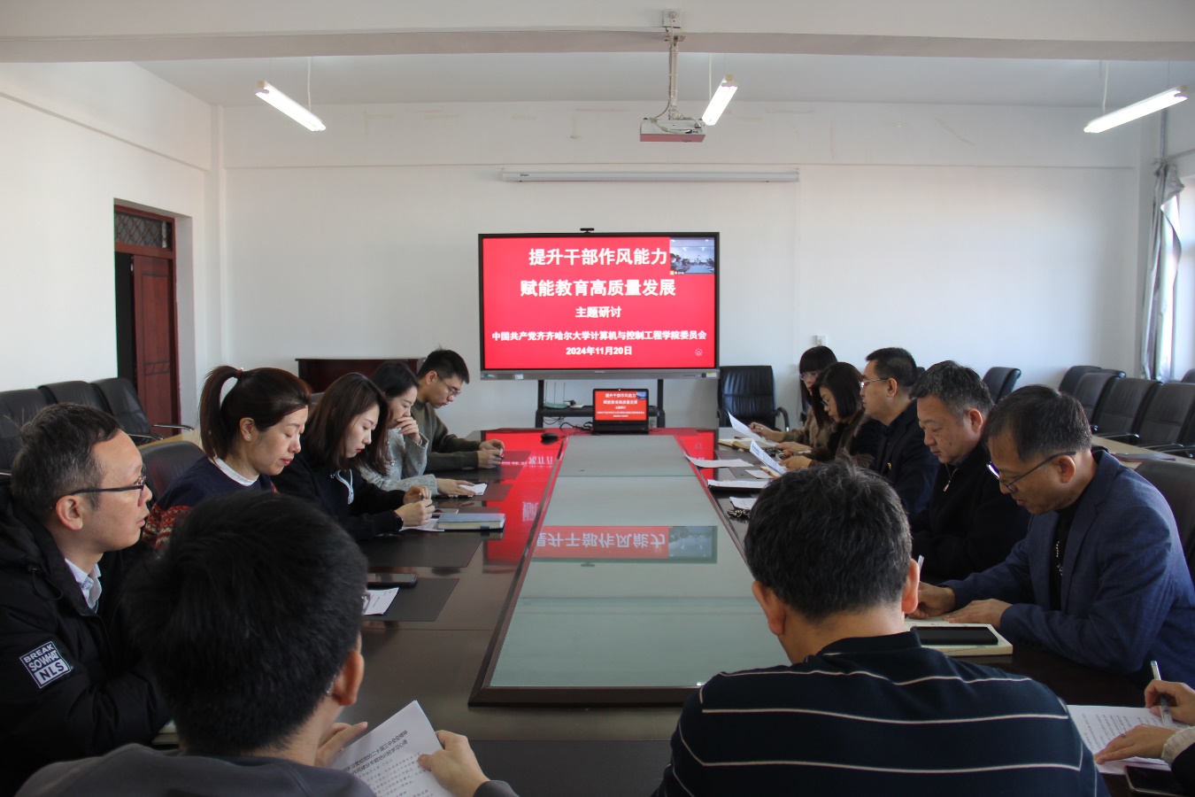 首先与会处科级干部围绕“提升干部作风能力赋能教育高质量发展”开展主题研讨。党委书记陈志强表示,提升干部作风能力要进一步加强政治理论学习,坚定理想信念;进一步提高党性修养,践行宗旨意识;进一步改进工作方法,勇于担当作为;进一步筑牢初心使命,保持廉洁本色。党委委员于晓敏表示,干部能力作风是干部素质的重要组成部分,也是推动工作落实的重要保障。提升干部作风能力是推动教育高质量发展的必然要求。只有具备过硬的作风和能力,才能更好地履行职责、服务师生、推动发展。其他处科级干部纷纷结合本次处科级干部学习贯彻党的二十届三中全会精神暨深化能力作风建设专题培训班学习内容和分管工作发表感想和见解。
