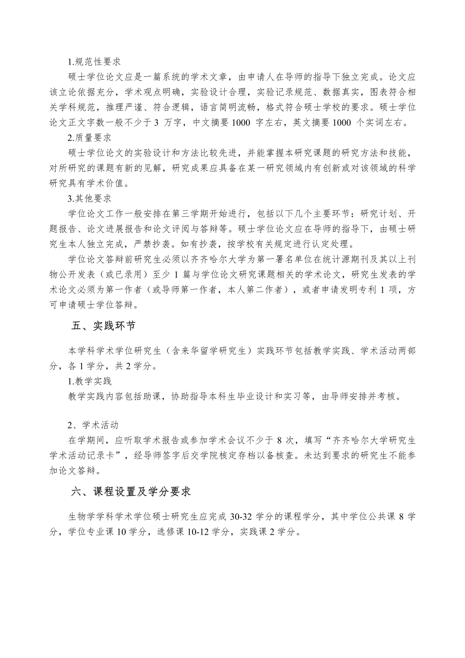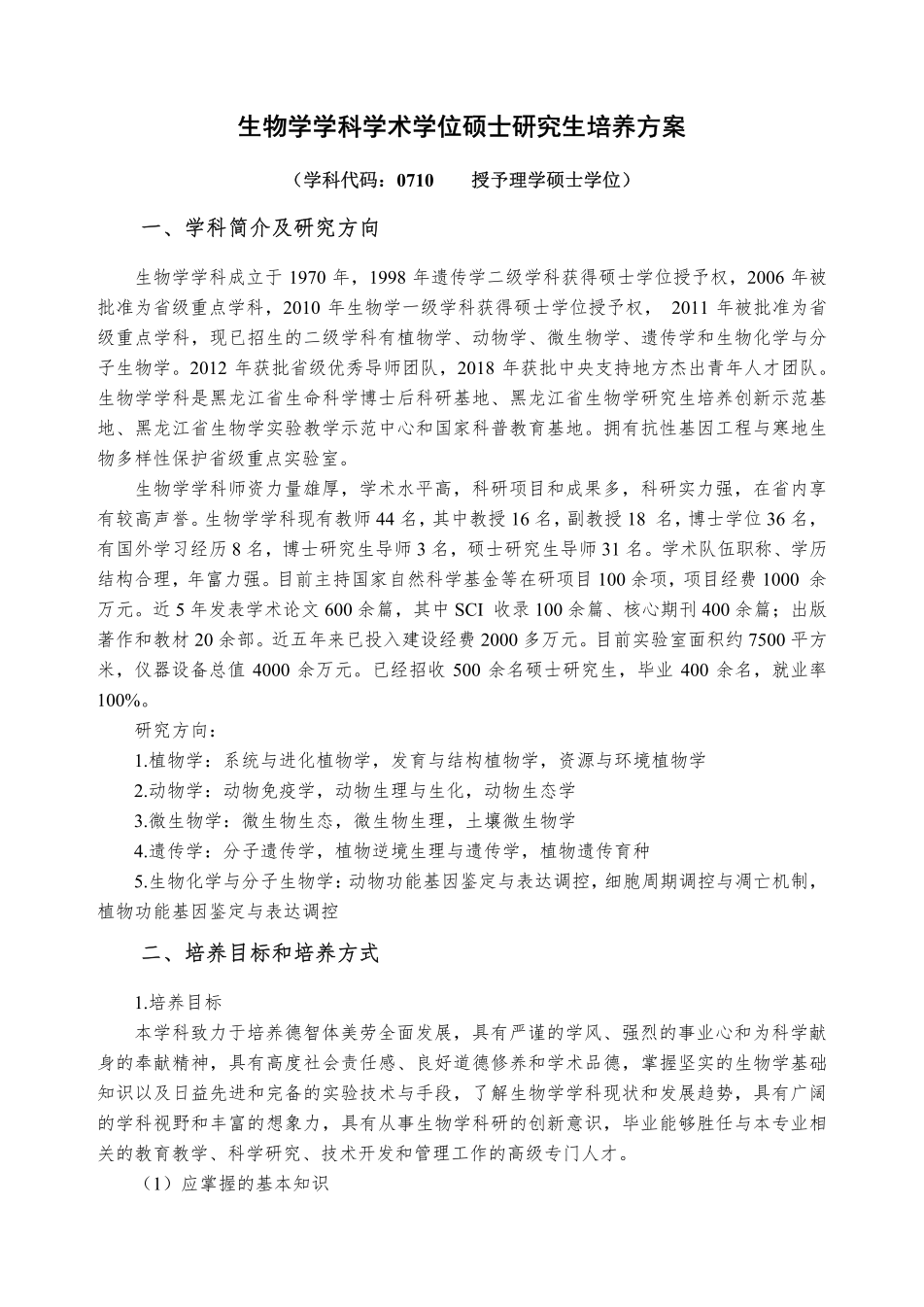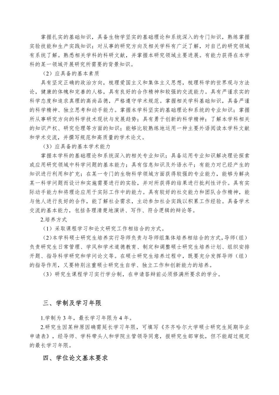 生物学学科攻读硕士学位研究生培养方案