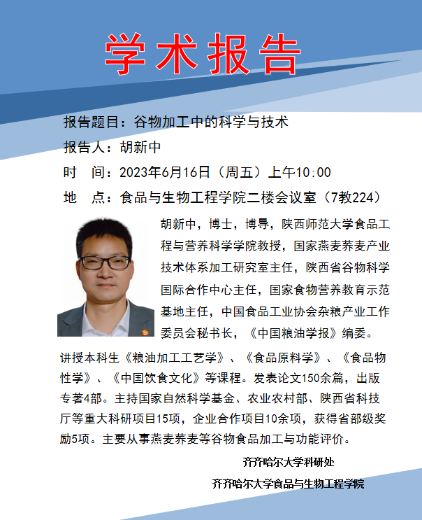 学术报告:谷物加工中的科学与技术