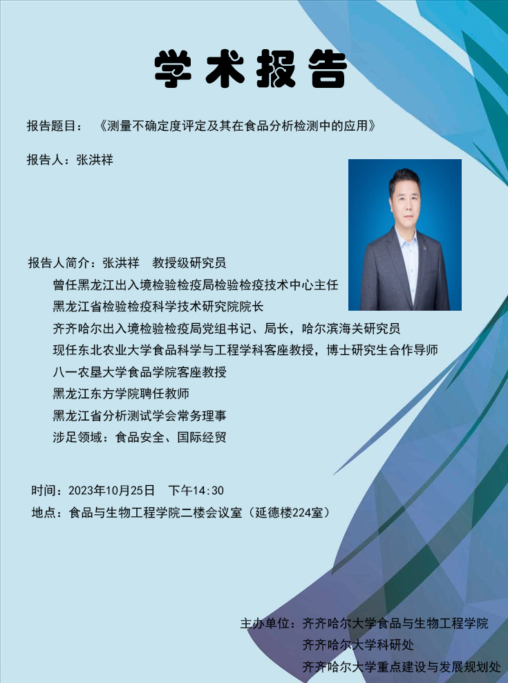 [食品与生物工程学院]学术报告:测量不确定度评定及其在食品分析检测中的应用