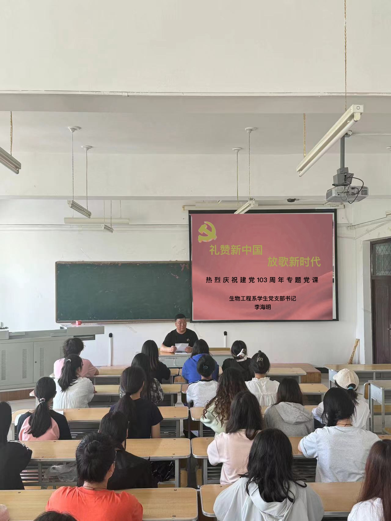 为深入学习贯彻党的二十大精神,深刻领会党章修正案的重大意义与重要内容,进一步提升支部党员的党性党风党纪意识,加强基层党支部思想政治建设。我院生物工程系学生党支部于2024年6月26日在西二区7教328多媒体教室开展“礼赞新中国 放飞新时代”纪念建党103周年专题党课活动。支部全体党员参加活动。此次活动由生工系学生党支部书记李海明主讲。